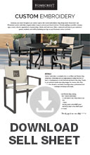 Showcase your brand throughout your outdoor spaces with custom-embroidered sling dining chairs! Homecrest's new UV-resistant custom embroidery program makes it easy to promote your brand outdoors. Virtually anything is possible: company logos, events, schools, organizations, championships, clients, and much more. Make a statement and impress your customers, guests, residents, and staff by displaying your logo on your Homecrest outdoor furniture!