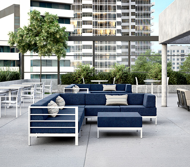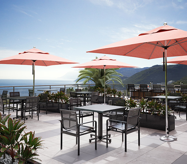 Our Elevate mesh collection puts a twist on our classic visual designs, while adding features that make it the ideal choice for hospitality, workplace, rooftop, and balcony environments. Crafted with solid aluminum frames for added weight and resistance against strong winds, these pieces have a unique shape that makes both the armed and armless units fully stackable. In addition, this collection is resistant to salt, sun, snow, and anything else nature can throw at it.