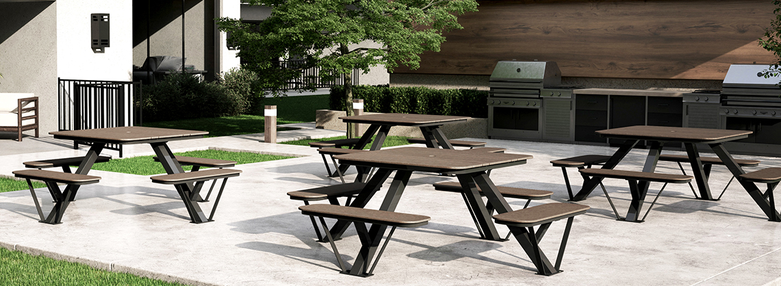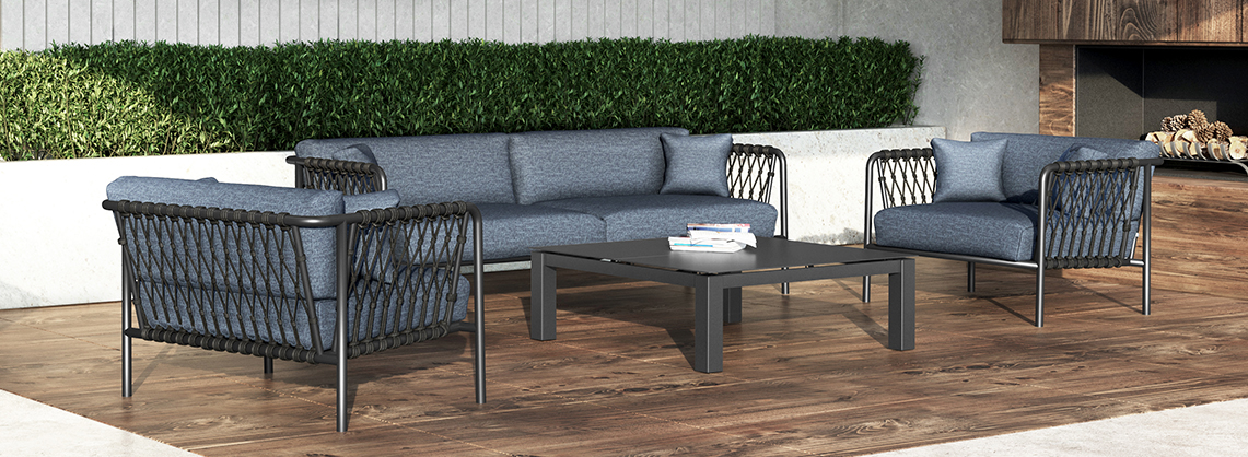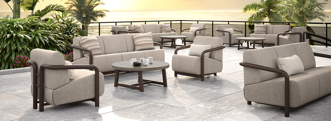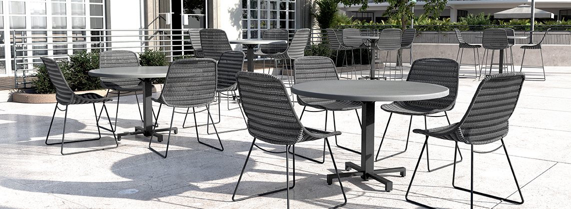 The Surf collection combines nature-inspired design with durable all-weather poly and aluminum materials, making it a stylish and practical choice for high-traffic outdoor spaces.