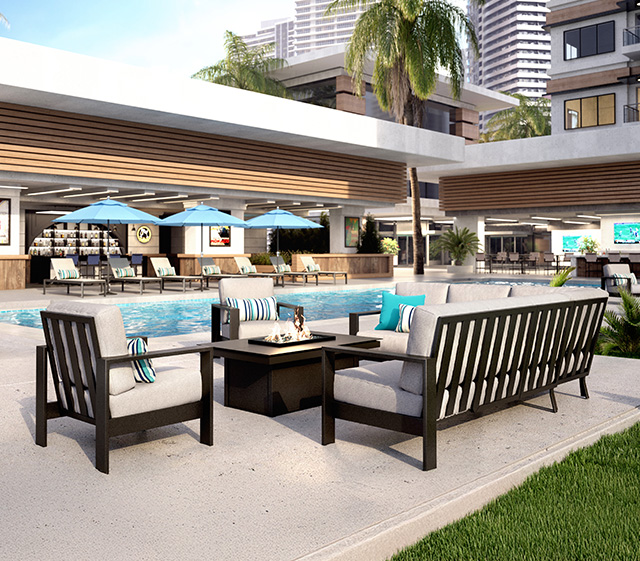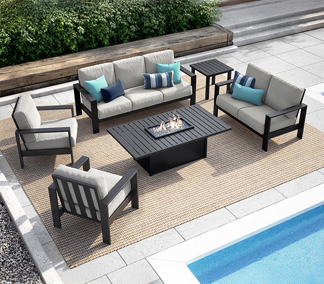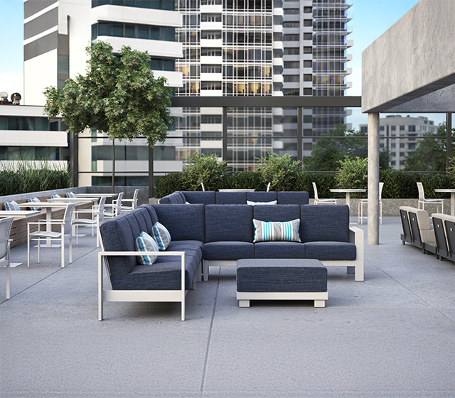 Elevate your outdoor seating experience with our Blair collection. Blair redefines relaxation with its plush cushions and sleek metal back design features. The 8” cushions featuring DreamCore technology mean you can sink into a soft seat, enveloped in comfort. Crafted with precision and durability in mind, Blair's all-aluminum frame ensures longevity and stability for years to come. Designed for versatility, Blair offers a variety of modular pieces that allow for unlimited configurations, creating arrangements tailored to your unique needs.