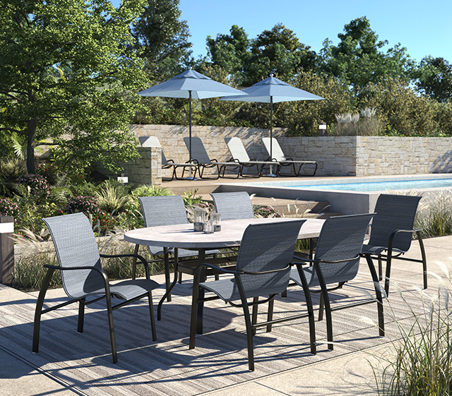 Infiniti is designed for ease of use in any space: at work or at play. Its flowing silhouette maximizes the surface area of our premium sling fabric while still maintaining sleek visuals. In addition, because of our double layer sling technology, Infiniti provides an exceptionally comfortable sit without any of the maintenance that is required by traditional cushions. This beautiful collection is sure to transform any outdoor space to become more attractive and inviting.